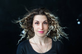 Portret uroda zbliżenie dziewczynka kaukaski makijaż glamour. Poziome zdjęcie
