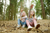 Zdjęcie "Dwa Śliczne młode siostry zabawy w lesie wycieczka na piękny letni dzień" może być wykorzystywane do celów osobistych i komercyjnych zgodnie z warunkami zakupionej licencji Royalty-free. Obraz jest dostępny do pobrania w jakości wysokiej rozdzielczości do 5760x3840.