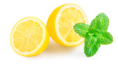 Cytryny i liście mięty izolowane na białym tle. Owoce cytrusowe z liściem melisy, zbliżenie