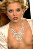 Topless blond wężowa sukienka ściągnięta, aby odsłonić jej jędrną klatkę piersiową