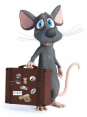 Zdjęcie "renderowania 3D uśmiechający się ładny myszy kreskówka machając ręką. On wygląda jak on jest gotowy do podróży z dwie walizki obok niego. Jest pusta ulica znak za nim. Białe tło." może być wykorzystywane do celów osobistych i komercyjnych zgodnie z warunkami zakupionej licencji Royalty-free. Obraz jest dostępny do pobrania w jakości wysokiej rozdzielczości do 5760x3840.