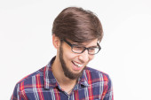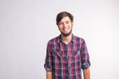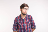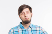 Ludzie, koncepcja gest i emocje - smutne Brodaty mężczyzna na białym tle
