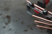 Rury, rury narzędzia Giętarka rammer i rury na monter tło pulpitu z miejsca kopii.
