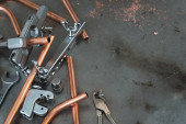 Zdjęcie "Rury, rury narzędzia Giętarka rammer i rury na monter tło pulpitu z miejsca kopii." może być wykorzystywane do celów osobistych i komercyjnych zgodnie z warunkami zakupionej licencji Royalty-free. Obraz jest dostępny do pobrania w jakości wysokiej rozdzielczości do 5760x3840.