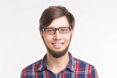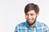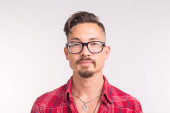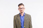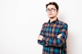Emocje, koncepcja ludzie - młody człowiek patrzeć na Ciebie poważnie, ręce za plecami