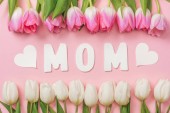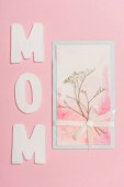 Biała Księga słowa serce Mama i papieru na różowym tle