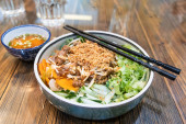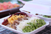 Wynos porcję Yee Sang lub Yusheng w pojemniku dla wygody. Podjęte podczas chiński nowy rok przez podrzucanie pałeczkami, uważa, że przynosi szczęście.