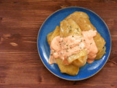 Roll kapusta, Gołąbki na drewniane shabby tło widok płaski