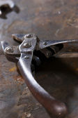 Zdjęcie "Stary specjalny klucz zaciskowy dla hydraulika. Narzędzia do napraw w domu. Ciemne tło." może być wykorzystywane do celów osobistych i komercyjnych zgodnie z warunkami zakupionej licencji Royalty-free. Obraz jest dostępny do pobrania w jakości wysokiej rozdzielczości do 5760x3840.
