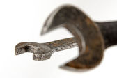 Stary klucz specjalny do hydraulika. Narzędzia do napraw w domu. Ciemne tło.