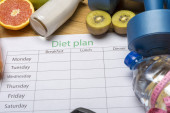 Zdjęcie "Arkusza plan diety i świeże jedzenie na białym tle. Widok z góry, pojęcie zdrowego odżywiania." może być wykorzystywane do celów osobistych i komercyjnych zgodnie z warunkami zakupionej licencji Royalty-free. Obraz jest dostępny do pobrania w jakości wysokiej rozdzielczości do 5760x3840.