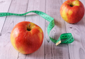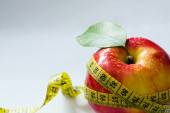 Zdjęcie "Smaczny, dojrzałe jabłka zawijane w taśmy mierniczej. Owoce na stół ciemny. Czarne tło." może być wykorzystywane do celów osobistych i komercyjnych zgodnie z warunkami zakupionej licencji Royalty-free. Obraz jest dostępny do pobrania w jakości wysokiej rozdzielczości do 5760x3840.