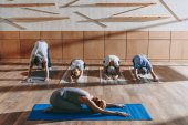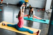 Słodkie dzieci robi Szpagat na maty fitness w siłowni