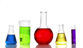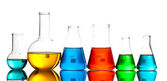 probówki z płynami kolorowy na białym tle