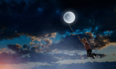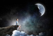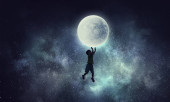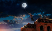 Zdjęcie "Chłopak posiada księżyc. Techniki mieszane" może być wykorzystywane do celów osobistych i komercyjnych zgodnie z warunkami zakupionej licencji Royalty-free. Obraz jest dostępny do pobrania w jakości wysokiej rozdzielczości do 5760x3840.