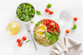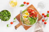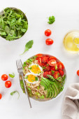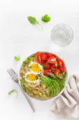 Quinoa z awokado, pomidor, jajko na twardo, rukolę. zdrowe śniadanie