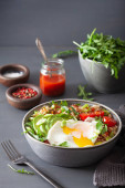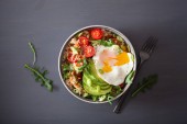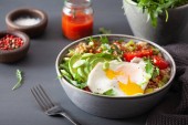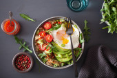 Quinoa miska z awokado, ogórek, jajko, soczewicy. Wegetariańska zdrowy obiad