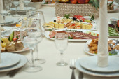 pyszne dania na stole w restauracji. serwowania tabeli.