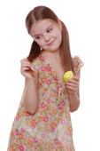 cute dziewczynka trzymając ozdobny koszyk z kurczaka Wielkanoc dziecka