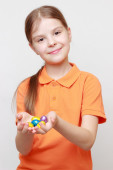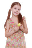 całkiem mała dziewczynka trzymając jajko kurczak na Wielkanoc