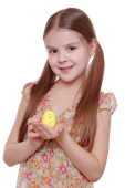 całkiem mała dziewczynka gospodarstwa ozdoba wielkanocna
