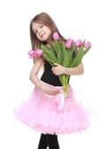obraz piękny dziecka z bukietem tulipanów