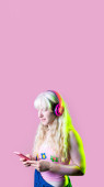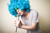 piękna dziewczyna kręcone peruki niebieskie i golfem