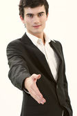 młody człowiek w garniturze, oferując wstrząsnąć ręcznie