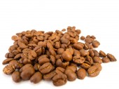 (Obraz w widoku z góry) ziarna kawy izolowane na białym tle.