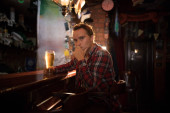 Entertainment concept. Młody człowiek Bilardowe gry