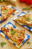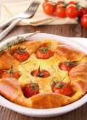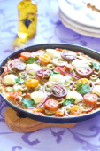 focaccia z rozmarynu, szparagi w jamon i pomidorkami