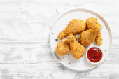 Zdjęcie "Płyta z pyszne nuggets i sosy na stół szary" może być wykorzystywane do celów osobistych i komercyjnych zgodnie z warunkami zakupionej licencji Royalty-free. Obraz jest dostępny do pobrania w jakości wysokiej rozdzielczości do 5760x3840.