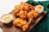 Zdjęcie "Smaczny bryłki z sosem na stole" może być wykorzystywane do celów osobistych i komercyjnych zgodnie z warunkami zakupionej licencji Royalty-free. Obraz jest dostępny do pobrania w jakości wysokiej rozdzielczości do 5760x3840.