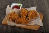 Chłodzenia szaf z pyszne nuggets i sosy na stół szary