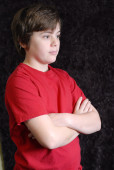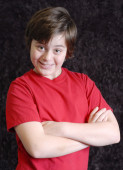 jasny brązowy oczach dwunastoletni chłopiec z wyrażenie zadowolony