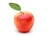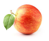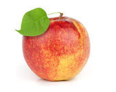 Świeża brzoskwinia z zielonym liściem na białym tle