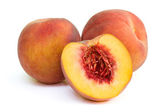 Dojrzałe owoce brzoskwiniowe izolowane na białym tle