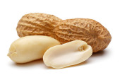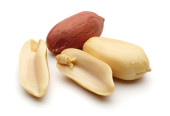 Orzeszki ziemne izolowane na białym tle, makro shot