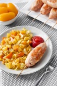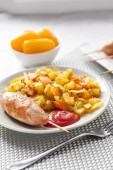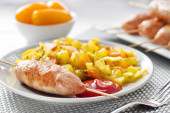 Udko z kurczaka pieczone z pieczonymi ziemniakami i dyni ozdoba na talerzu