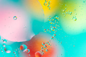 pęcherzyki oleju w wodzie z bliska na czerwonym tle zielony, kolorowy streszczenie tło