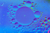 Wody i oleju bubble niebieskie tło. Strzał makro piękne wody i oleju bubble tło, z dużych i małych pęcherzyków