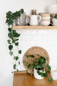 Spiżarnia otwarte półki w kuchni. Widzenia biała kuchnia