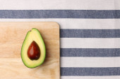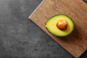 połowa awokado z nasion na cement tło widok z góry