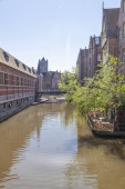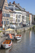 Żeglowne kanały, nad rzeką Lys w zabytkowym centrum miasta