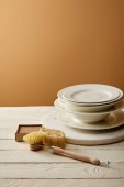 Widok z góry ułożone płytki i paski bawełny ręcznik na białej powierzchni drewnianych