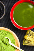Zdjęcie "Tradycyjne miska z zielonego proszku herbaty Matcha. Widok z góry, miejsce." może być wykorzystywane do celów osobistych i komercyjnych zgodnie z warunkami zakupionej licencji Royalty-free. Obraz jest dostępny do pobrania w jakości wysokiej rozdzielczości do 5760x3840.