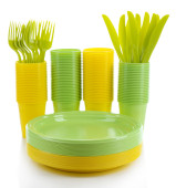 wielobarwny plastikowe naczynia na białym tle
