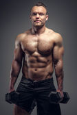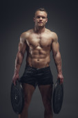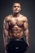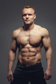 przystojny mężczyzna nagi tors pozują przed czarna ściana