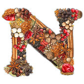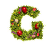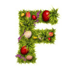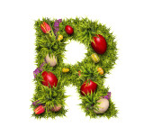 Wielkanocne wakacje literę N wykonane z zielonej trawy i pisanki na białym tle