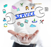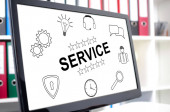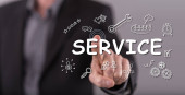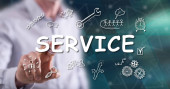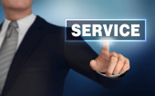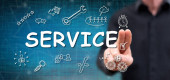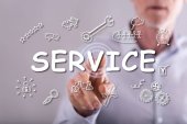 Kobieta dotykająca palcami koncepcji serwisu na ekranie dotykowym